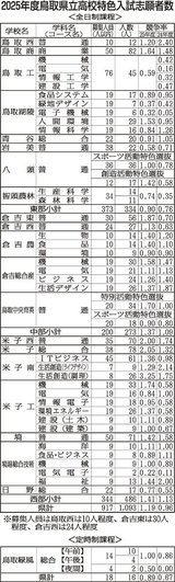 特色入試競争率1.19倍 鳥取県立高全日制