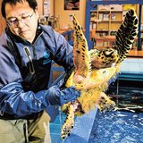 ウミガメのタイマイ、元気に生きてね 鳥取