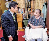 百寿祝い伯州綿膝かけ 境港 足立さんに市長贈る
