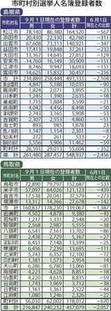 島根54万8937人 鳥取45万7079人 選挙人名簿登録者