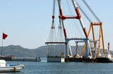 境港防波堤 今秋完成へ 国交省 最後の構造物設置