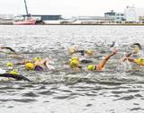 中海力泳 全国から124人 米子 水環境に思いはせ