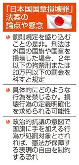 国旗損壊罪法案、論点多く 罰則や表現の自由、自民協議へ