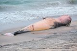 北栄の海岸にクジラ漂着 体長7・1メートル、腐敗