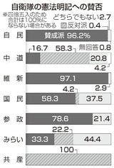 9条に自衛隊明記「賛成」、自維は90%超 衆院選当選者アンケート分析