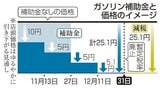 ガソリン補助20円に 5円増額、値下がり継続へ