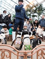 ペンギン、正月衣装で愛らしい姿 松江フォーゲルパーク