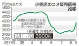 コメ5キロ3カ月ぶり高値 3900円、前週比314円上昇