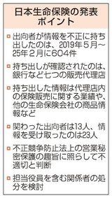 日生 情報不正取得604件 出向者13人、7代理店から 役員ら共有、指示は否定