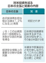 80兆円の対米投資 日本主張、覚書に明記なく 玉虫色表現、火種化の恐れ
