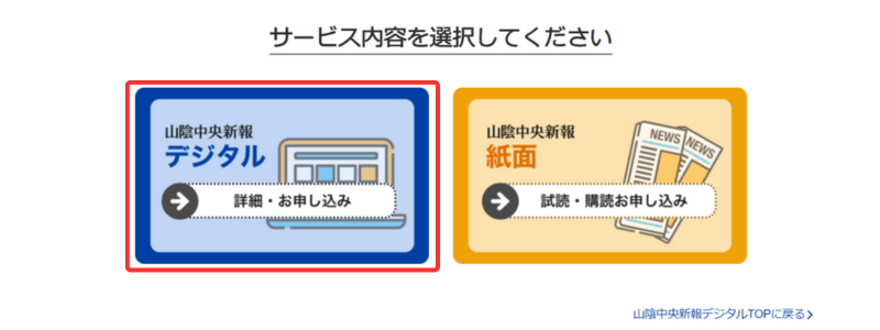 プラン選択ページ(https://www.sanin-chuo.co.jp/list/koudoku_select_page)の「デジタル」をクリックします。