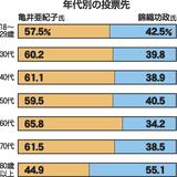 年代別の投票先 80歳以上除き亀井氏へ