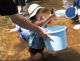 ニジマスつかみ取ったヨ 大田の時飛石川 市内外から親子連れ