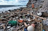 隠岐の島に大量のごみ漂着 ローソク島展望所へ続く遊歩道ふさぐ 高波と強風が影響