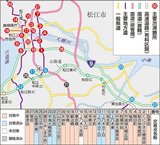 島根県内の主要渋滞箇所 6割が松江に集中 橋梁影響、支線整備困難 バス路線縮小も妨げ