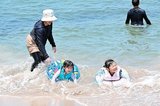 隠岐の海岸に、転覆した木造船が漂着 全長約6.5m、文字や数字の記載なし
