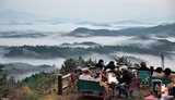 幻想的な景色、朝食楽しむ 川本、雲海の名所・丸山城跡