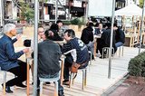 米子駅前で市民ゆったり 一部車線開放、飲食や休憩