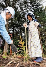 成長楽しみ、スギ苗植林 大田・三瓶で親子連れ20人体験