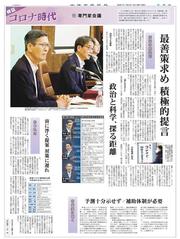 (11) 専門家会議政治と科学、探る距離最善策求め 積極的提言宙に浮く提案 対策に遅れ 次回は25日に掲載しますあつれき未知の感染症専門家に聞く予測十分示せず / 補助体制が必要新型コロナ感染症対策 分科会の主なメンバー30回以上も発表「首になるかと」方針転換に仰天