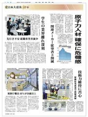 原子力人材 確保に危機感関連メーカー従事者3割減規制庁職員 46%が50歳以上学生の業界離れ深刻先行き不安 就職希望者減少技術力維持に苦心 稼働原発派遣や模擬訓練