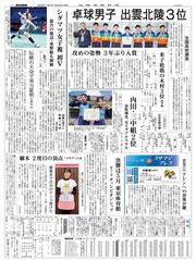 卓球男子・出雲北陵3位 攻めの姿勢 3年ぶり入賞 女子単、米子松蔭の木村3位 全国高校選抜