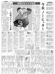 今永 ノーヒッター 球団52年ぶりの快挙 1四球のみ ゲーム支配