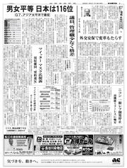男女平等 日本は116位 G7、アジア太平洋で最低 議員、管理職少なく格差