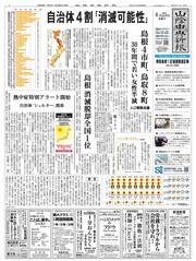 自治体4割「消滅可能性」 島根4市町、鳥取8町 30年間で若い女性半減 人口戦略会議