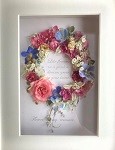 フランス語でお花の宝石箱を意味するレカンフラワーは、お花を一番綺麗な状態で乾燥させ色も形もそのままに立体の額縁に入れて保存するフラワーアートです。押し花もできます。