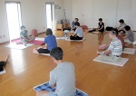 軽く汗ばむ程度の易しいリズム体操に始まり、自宅でも出来る筋力向上運動の後は、セルフマッサージとストレッチでリラックスします。