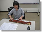 大正琴は日本で生まれた和楽器で、テーブルに楽器を置き、椅子に座って演奏します。