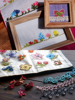 トルコの伝統的な手工芸を体験しませんか。縫い針で作る「イーネオヤ」(写真上)、シャトルで作る「メキッキオヤ」(同下)の基本的な編み方を全3回で学びます。お申込み時にどちらかお選びください。