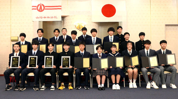 第34回山陰中央新報スポーツ優秀選手賞は、島根県内の中高生の中から2022年の全国規模のスポーツ大会で特に優秀な成績を収めた5団体12個人を選んだ。