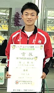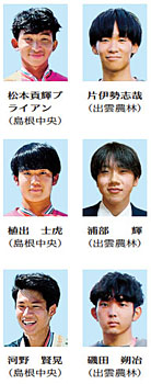 【個人】陸上・外野晴琉(出雲高校3年)▽同・吉迫大成(島根中央高校3年)▽同・佐野陽菜(松江工業高校3年)▽カヌースプリント・片伊勢志哉(出雲農林高校3年)▽同・植出士虎(島根中央高校2年)▽同・松本貢輝ブライアン(同校2年)▽同・河野賢晃(同校1年)▽同・浦部輝、磯田朔冶(出雲農林高校2年)▽ビーチバレー・江角翔央、吉岡健太(大東高校2年)▽なぎなた・広瀬米香(出雲北陵高校2年)▽陸上・蒲生悠桜(出雲市立第三中学校3年)▽卓球・山田萌心(益田中学校2年)