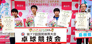 卓球の出雲北陵男子は、全国高校選抜大会(3月)四国総体(8月)栃木国体少年男子(10月)で3位入賞を果たした。 |