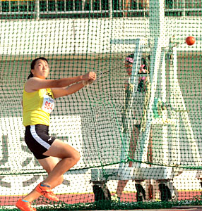 四国総体陸上女子ハンマー投げで佐野陽菜(松江工)が自らが持つ高校山陰記録を塗り替える53メートル02をマークし、準優勝した。 |