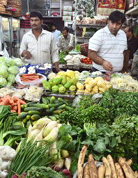 インドの市場では野菜、果物、魚介類、肉類などを外国人は2〜3倍の値段で買わされることが多くあります。それでも日本の物価と比べて格段に安いので、日本人はあまり気にもかけず買ってしまいます。これは外国人には高く売りつけるインド式商法で、だまされたと思うこともしばしばです。 |