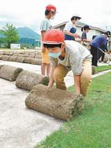 校庭に芝 けがなく涼しく 米子